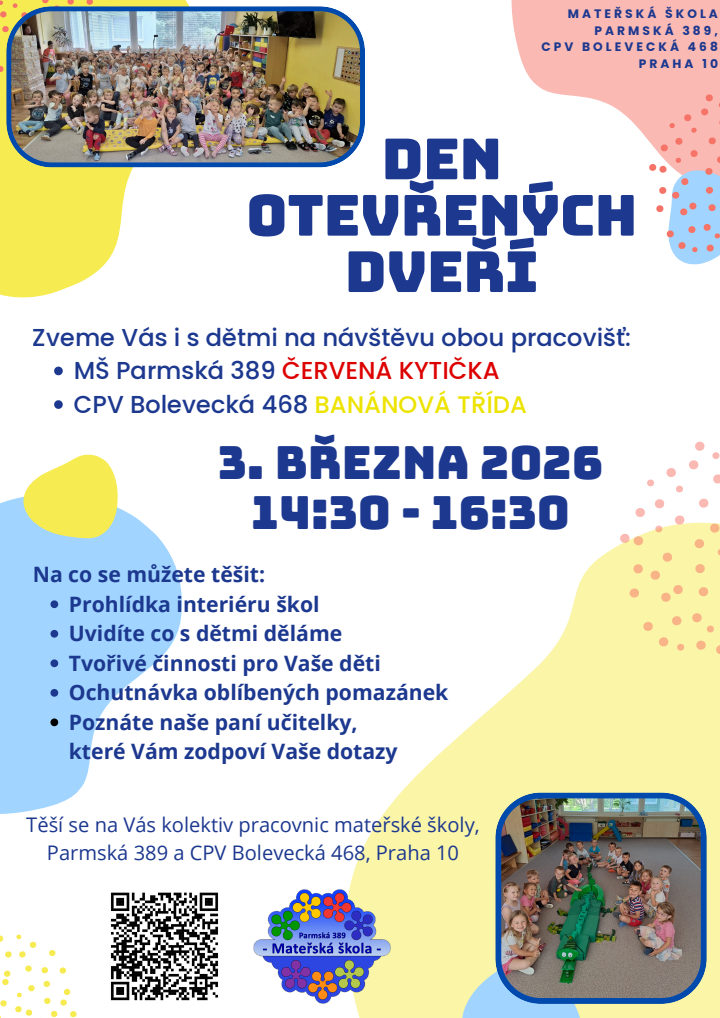 MŠ, PRAHA 10, PARMSKÁ 389: 27.7. – 7.8.2026